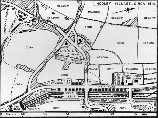 As one who has lived here all my life, I am often asked what Hooley was like some sixty odd years ago. Flanked, as now, by chalk banks and railway cuttings on one side and faced by corn fields, meadows and woods on the other, Hooley was indeed a most pleasant place in which to live.