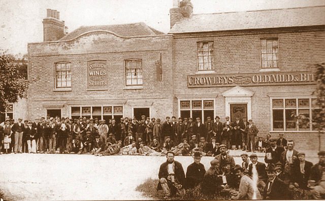 Construction workers outside the Star Inn in 1909 during the celebrations for the completion and opening of the Netherne Asylum. The Star was out of bounds for the asylum inmates.