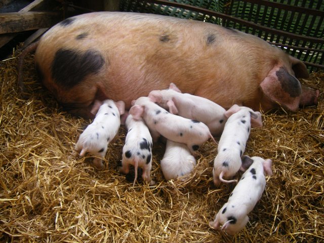 Tamworth piglets enjoying a feed
