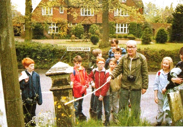 Christopher “Beating the Bounds” at the Coal Post at the junction of Coulsdon Lane and Hollymead Road in 1987. Coal-tax posts are boundary marker posts found in southern England. They were erected in the 1860s and form an irregular loop between 12 and 18 miles from London to mark the points where taxes on coal imported into London were due to the Corporation of London. There were originally around 280 posts of which around 210 remain. Chipstead’s local posts also mark the parish boundary with London.