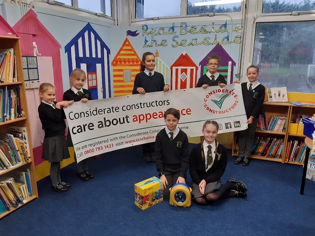 Retirement developer McCarthy Stone, has donated a life-saving defibrillator to Woodmansterne Primary School along with £150 donation for the school library, after children at the school produced a gallery of art works to brighten-up the hoardings on the site of the new Goldfinch House Retirement Living development on Outwood Lane in Chipstead.